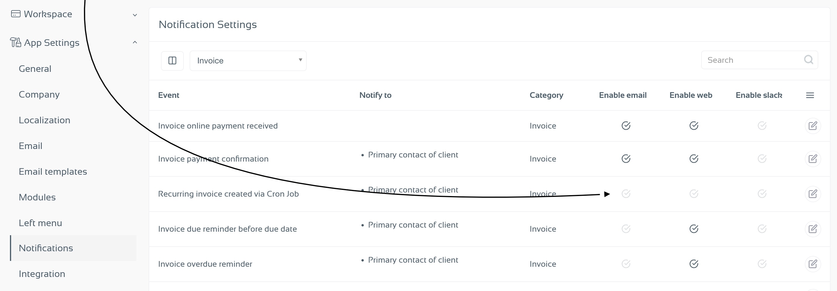 Filter notifications by the Invoice category